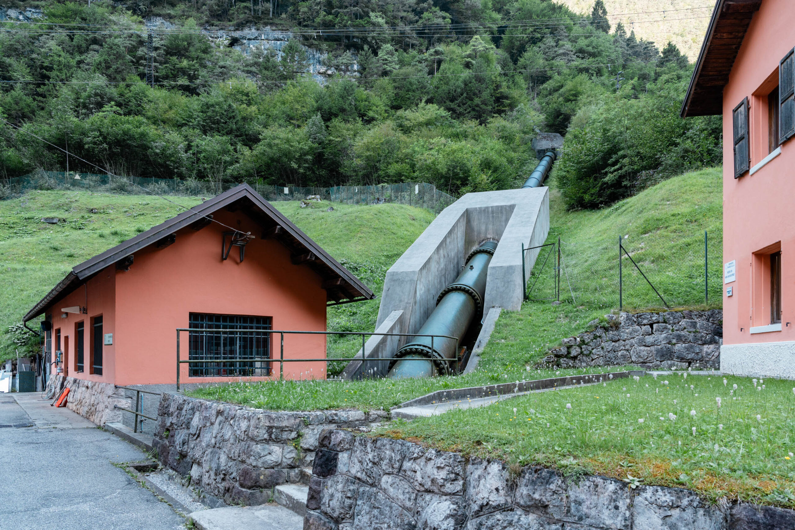 La galleria è collegata alla centrale con una condotta forzata metallica lunga 525 m circa, con diametro di 2,25 m.